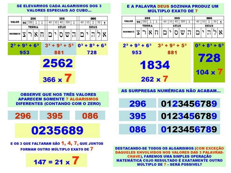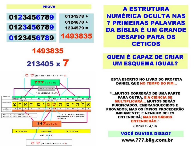 O Site de Moacir Junior apresenta alguns dados interessantes sobre o número 7 na Bíblia. Trazemos alguns Slides publicados em seu site. Porém lembramos os nossos leitores de que tudo deve ser lido com sabedoria. A Bíblia diz que: