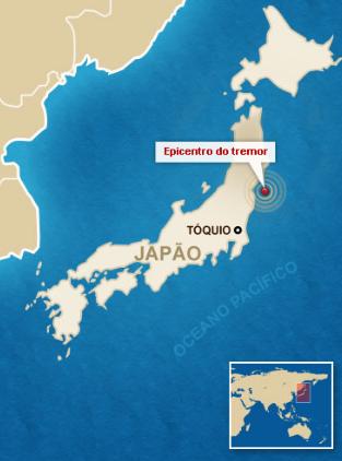 O epicentro do tremor, que ocorreu às 17h08 (horário local, 5h08 em Brasília), foi a 40 km abaixo do nível do mar nas proximidades da ilha de Honshu, a principal do arquipélago japonês e que abriga a capital, Tóquio.