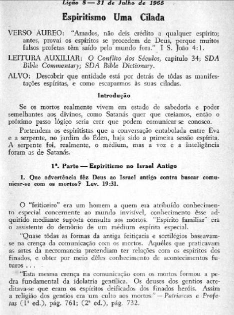 […] 10- Estudo Bíblico de 1965: Espiritismo – uma cilada mortal […]