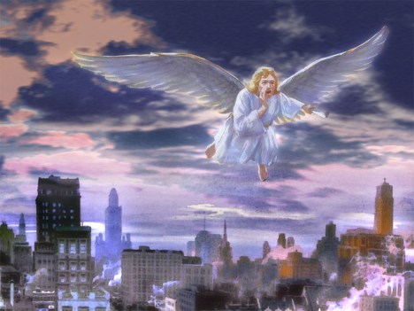 “Vi outro anjo voando pelo meio do céu, tendo um evangelho eterno para pregar aos que se assentam sobre a terra, e a cada nação, e tribo, e língua, e povo, dizendo, em grande voz: Temei a Deus e dai-lhe glória, pois é chegada a hora do seu juízo; e adorai aquele que fez o céu, e a terra, e o mar, e as fontes das águas.” Apocalipse 14: 6 e 7
