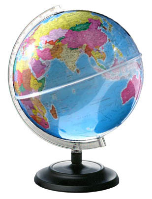 Desde criança eu sonhava em ter um globo terrestre: de preferência que viesse com o mapa geopolítico do mundo. Estes dias passei em frente a uma grande papelaria, não resisti e comprei. Comprei um bom globo de plástico (120 reais), mas minha paixão é tanta que ainda desejo ter aquele globo de vidro que deve beirar os mil reais.