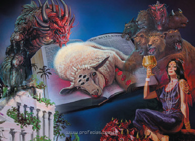 Símbolos no apocalipse: Mulher (Igreja Católica), Cordeiro (Jesus), Dragão (Lúcifer), Besta cavalgada pela mulher (Europa) etc.