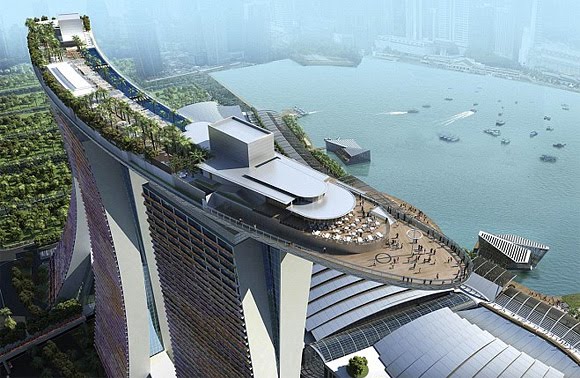 Exemplo: Marina Bay Hotel em Cingapura. Possui a piscina mais alta do mundo: no 55° andar.