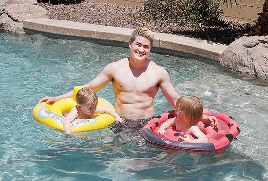 O primeiro transexual a dar à luz, Thomas Beatie, mostrou nesta semana sua boa forma 12 meses após o nascimento de seu terceiro filho. Ele está malhado e sua barriga é tanquinho, ou seja, tem os músculos bem definidos.