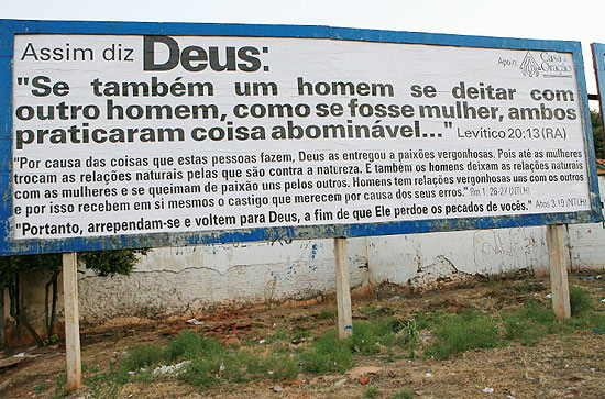 A Justiça de Ribeirão Preto (313 km de São Paulo) determinou a retirada imediata da mensagem com citações evangélicas em um outdoor que gerou críticas pelo movimento gay da cidade.