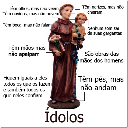 Salmos 115 e 135 delineados na imagem de Santo Antônio