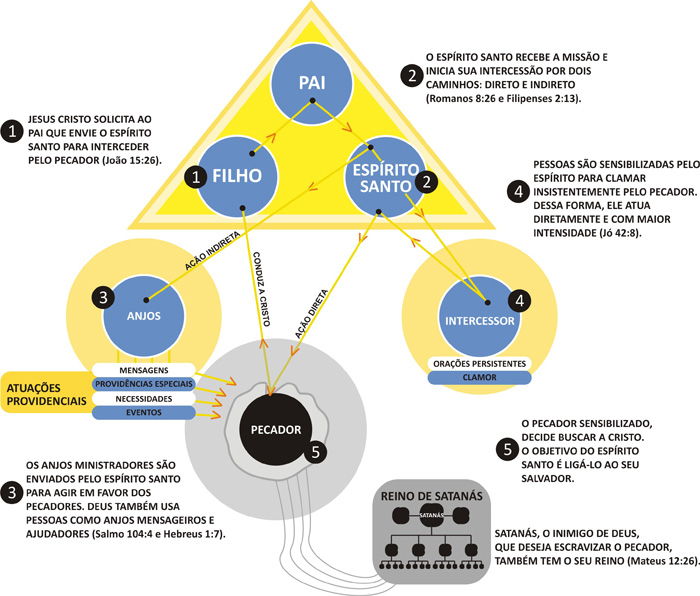 Imagine que exista uma pessoa que não deseja abrir o coração. Ela gosta do mal e de tudo aquilo que pratica. Deus tem uma Lei que garante o livre-arbítrio aos seres humanos. Sendo assim, o que o Salvador pode fazer por ela? Como um pai de amor, Cristo tem um plano especial para oferecer uma chance real a todo pecador rebelde. Quando clamamos por alguém que não abre seu coração para a influência do Espírito Santo, o socorro e a influência divina são liberados para agir na vida dessa pessoa, simplesmente porque estamos pedindo a Deus. Cada vez que oramos por uma pessoa, o Espírito Santo pode agir de forma direta. Deus sente mais prazer em atuar quando existe um pedido. Como exemplo, vamos citar o personagem bíblico Jó. Deus o convocou para orar pelos seus amigos que haviam pecado contra Deus, dizendo: ‘’…e o meu servo Jó orará por vós; porque dele aceitarei a intercessão, para que eu não vos trate conforme a vossa loucura…’’ (Jó 42:8).