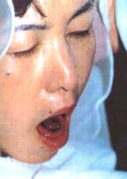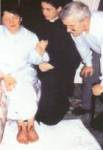O milagre da eucaristia (hóstia), surge sangrando na boca de Julia Kim, estigmata Set. 1995, em plena Missa celebrada pelo Bispo Romano Danylak de Toronto em Naju, Coreia.
