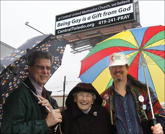 A Igreja Metodista Unida de Ohio, que está em apostasia, colocou um outdoor na avenida com a seguinte mensagem: “Ser Gay é um Dom de Deus”. Então o pastor de uma mega-igreja local decidiu lutar fogo com fogo e comprou nove outdoors com a mensagem: “Ser Gay não é Dom de Deus — Perdão, Amor e Vida Eterna São”.