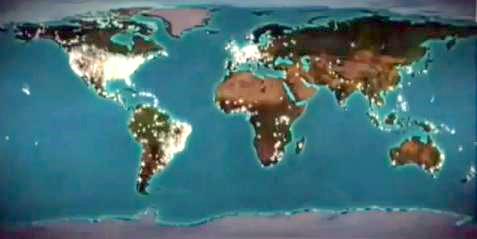 A) Os pontos brancos mostram onde estão as milhares de igrejas adventistas ao redor do mundo.