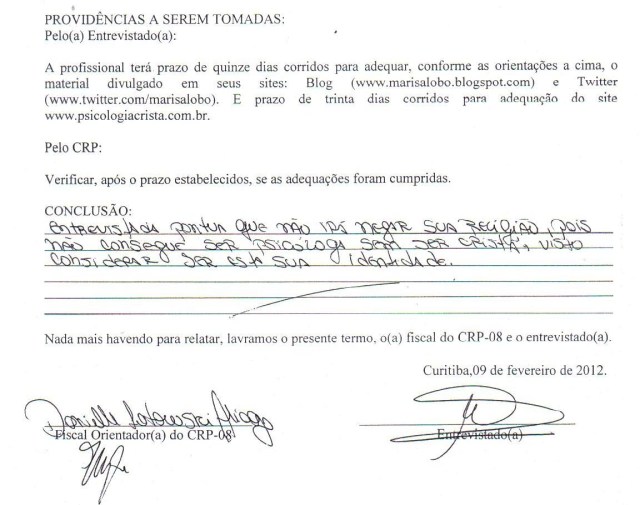 * “Você não tem o direito, não pode se dizer Cristã e psicóloga ao mesmo tempo é ferir o código de ética.”