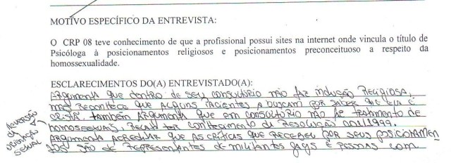 As fiscais leram todo código de ética, reforçando que ela é muito conhecida e que sua posição fere o conselho de psicologia e estão induzindo pessoas a posições contrárias ao homossexualismo e a convicções religiosas.
