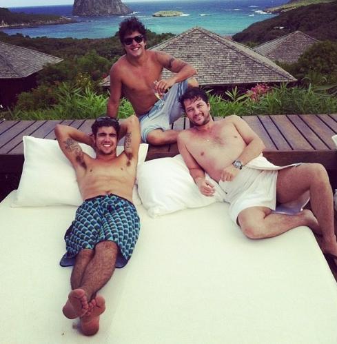 Guilherme Boury posta foto ao lado de Caio Castro e Marcelo Serrado em Fernando de Noronha (PE). “Noronha feelings …”, escreveu Boury na legenda da imagem que postou no Twitter. Os três atores despediram-se recentemente de “Fina Estampa”, novela em que interpretaram os personagens Daniel, Antenor e Crô, respectivamente (2/4/12).