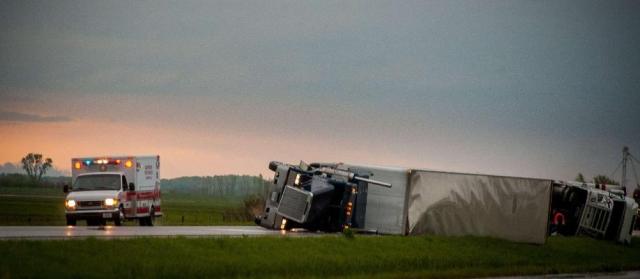 Caminhão tombado e Casa destruída após passagem de tornado em Thurman, no Estado americano de Iowa. Uma série de tornados atingiram vários Estados do país neste sábado (14/04) e domingo (15/04/2012).