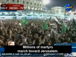 “Nossa capital não será Cairo, Meca ou Medina. Será Jerusalém com a vontade de Deus. Nossos cantos serão: “milhões de mártires irão marchar rumo a Jerusalém” … Sim, nós queremos rezar em Jerusalém ou seremos mártires lá “.