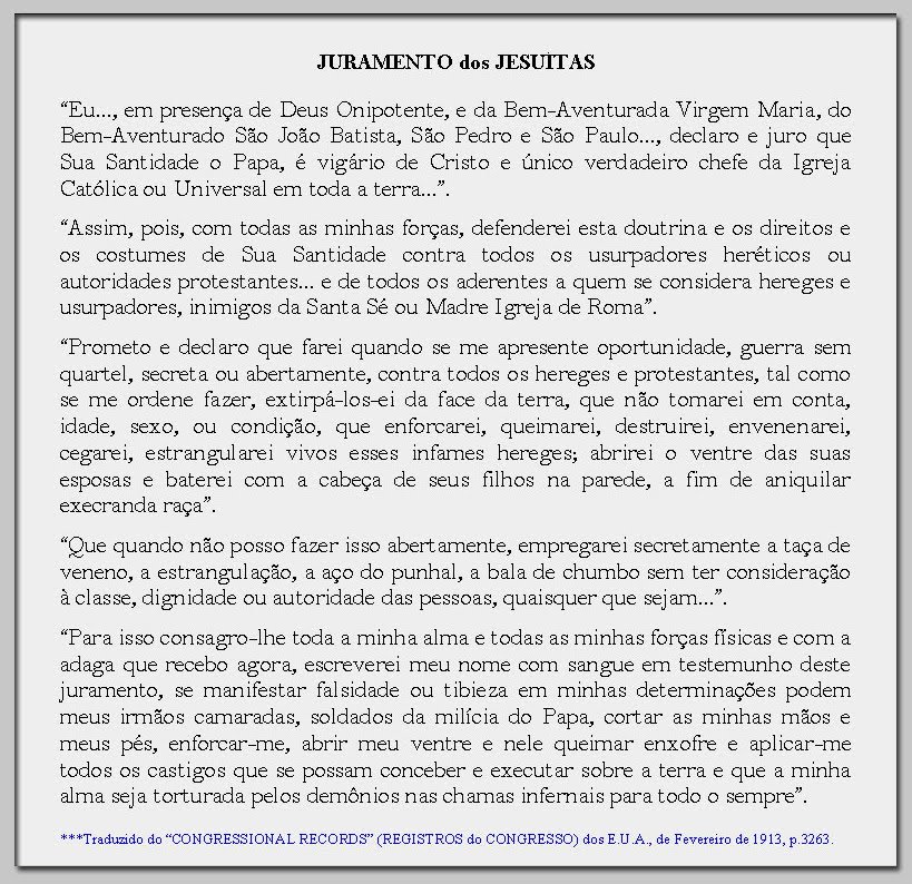 O objetivo maior da Ordem Jesuíta é a reconstrução do Templo de Jerusalém, a fim de lá entronizar o papa de Roma, de onde este deverá governar o mundo. […]