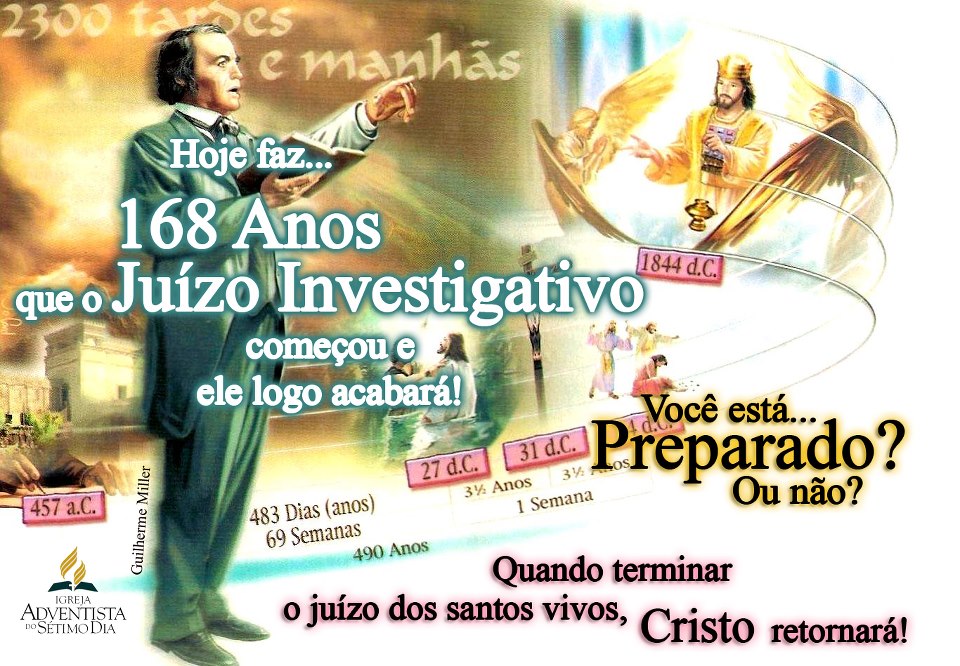 Fonte: https://www.facebook.com/reavivarereformar Veja também na página Oficial da Igreja Adventista no Youtube a Mensagem do Presidente da Divisão Sul Americana sobre os 168 anos de início da abertura do processo divino.