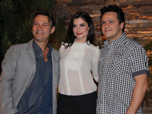 Nelson Freitas, Alinne Moraes e Danton Mello no lançamento da série