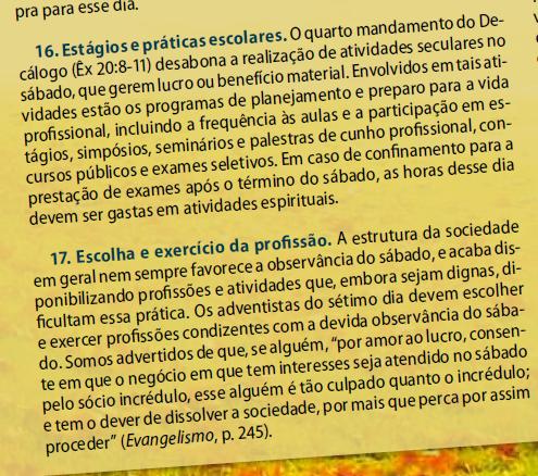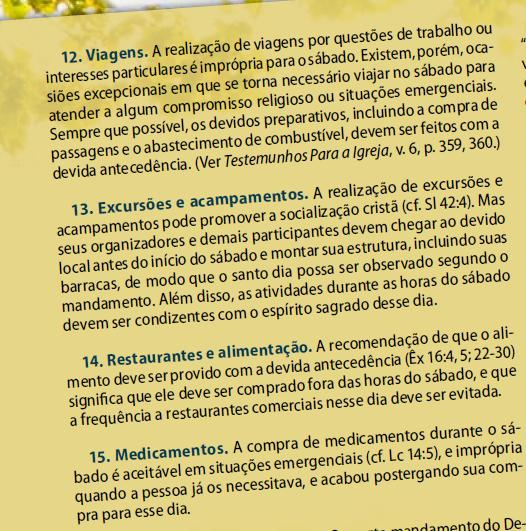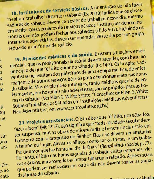 O ítem 19 deste post é pura hipocrisia adventista. O hospital existente no Rio funciona como uma empresa e mantém serviços desnecessários durante as horas do sábado inclusive cobrando serviços quando são particulares e cobrando a refeição dos funcionários. Trabalhar em emergência nas horas do sábado em hospitais que não sejam ASD é pecado, mas nos ASD pode. Ora, me poupem! Vamos parar com a hipocrisia!