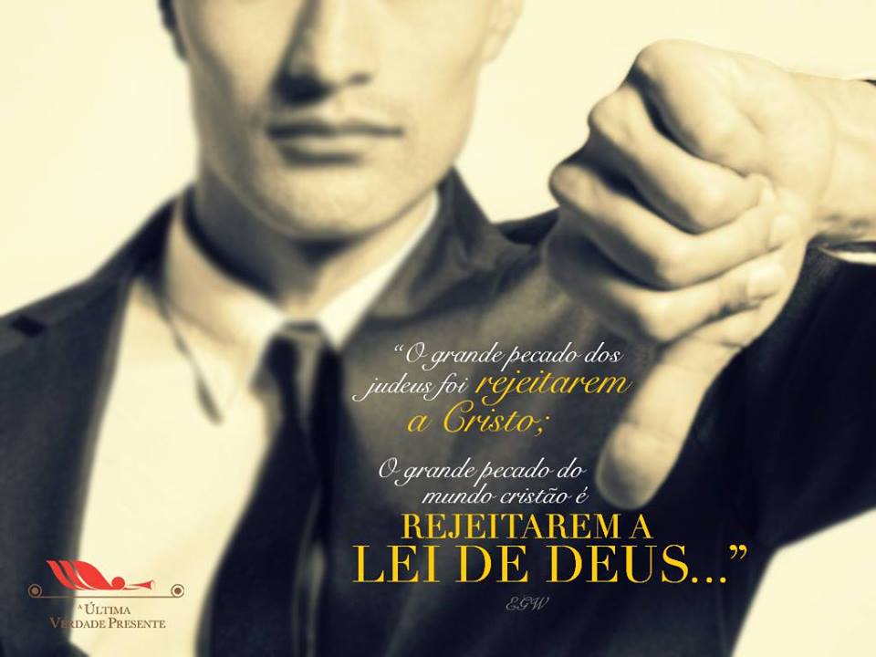 O grande pecado dos judeus foi rejeitarem a Cristo; o grande pecado do mundo cristão seria rejeitarem a lei de Deus, fundamento de Seu governo no Céu e na Terra. Os preceitos de Jeová seriam desprezados e anulados. Milhões na servidão do pecado, escravos de Satanás, condenados a sofrer a segunda morte, recusar-se-iam a escutar as palavras de verdade no dia de sua visitação. Terrível cegueira! estranha presunção! (O grande Conflito, pág. 22.2)