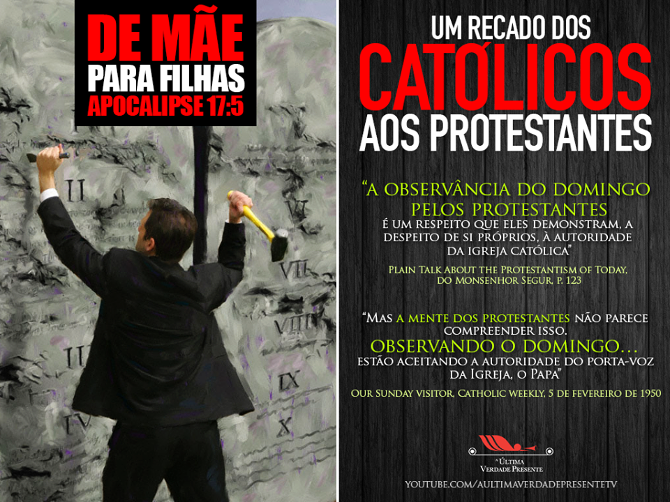 E aos PROTESTANTES [EVANGÉLICOS]??? Resta somente concordar que a crença no domingo como o dia de descanso é uma prova de que reconhecem ser a igreja romana a SUA MÃE, porque pela Palavra de Deus provar tal mudança é impossível.