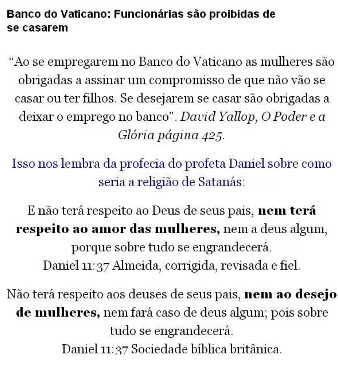 Veja a denúncia; Os falsos profetas sempre interferem no casamento, proibindo o próprio casamento ou proibindo filhos. É o mesmo caso do anticristo papal.
