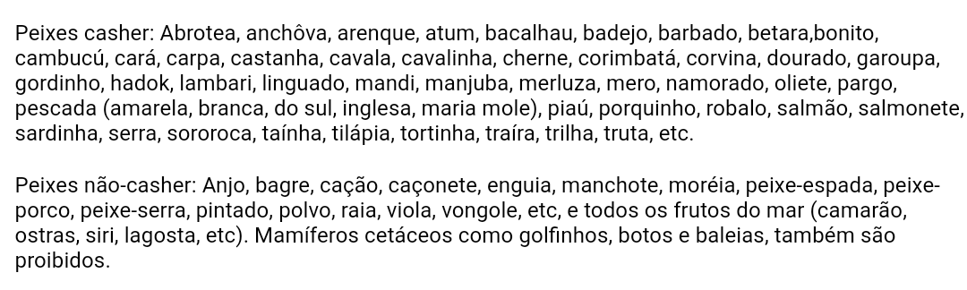 Lista de peixes limpos (casher) e impuros
