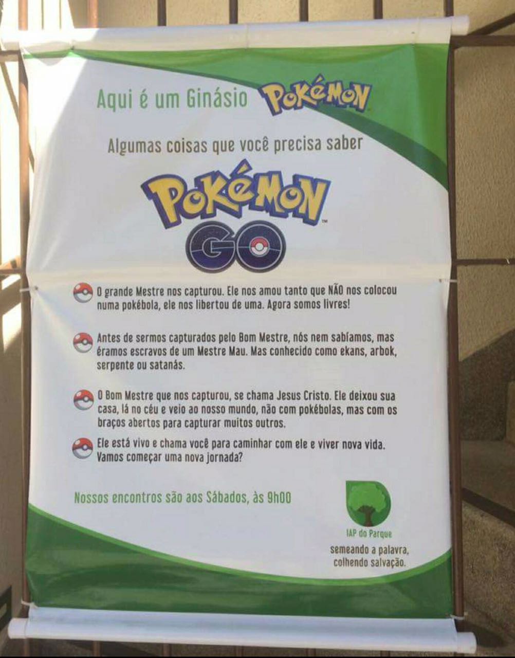 Igrejas e pontos turísticos foram transformados em ginásios do jogo POKÉMON GO. Esse jogo funciona por GPS. Os jogadores precisam se dirigir até esses locais para jogar. Uma igreja adventista teve a ideia de evangelizar através disso.