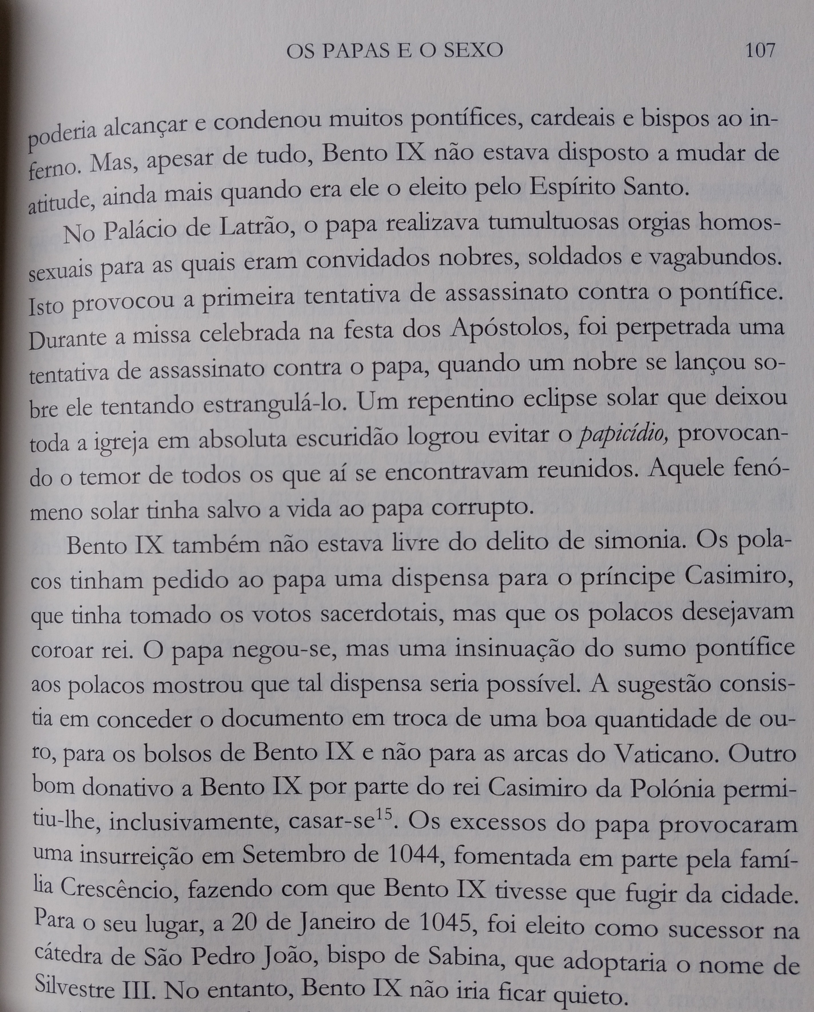 Fonte: os papas e o sexo. Eric Frattini. Bertrand editora, Portugal 2010. Páginas 105-107.