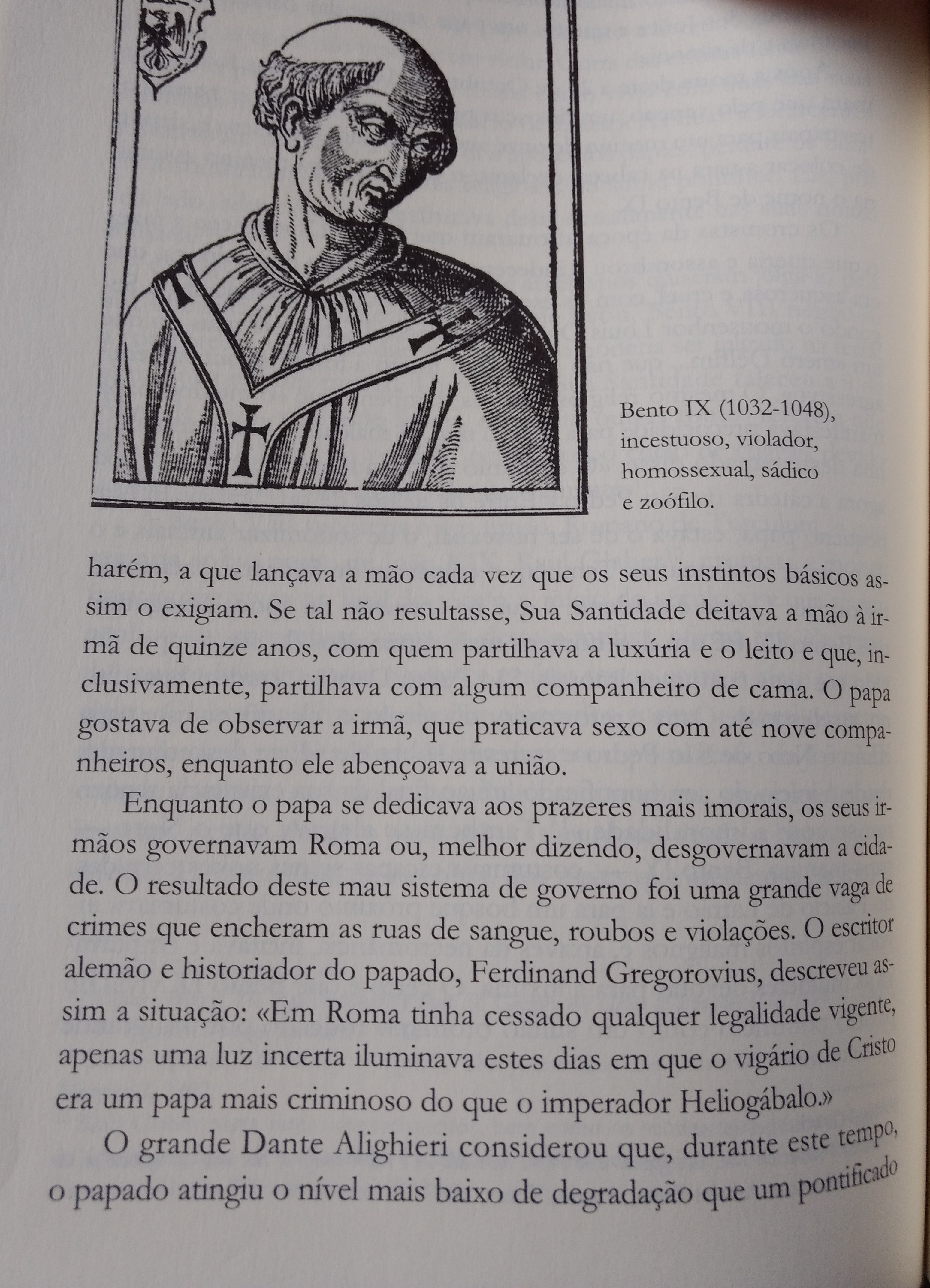 Livro recomendado sobre os crimes e pecados dos papas. Recomendado para aqueles que ainda acreditam na santidade da igreja católica para que possam ver que essa igreja não é mais de Cristo há séculos.