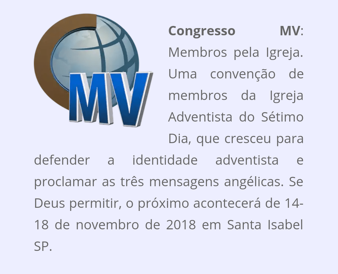 https://youtu.be/d9o_OSCKPLk Inscrições: http://www.congressomv.org/inscricao/