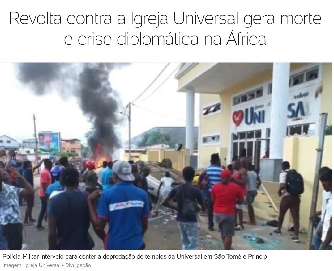 Interessante notar como somente o brasileiro parece ser passivo em relação a variados crimes de corrupção. Nas outras nações há revolta que causa depredação e mortes. Isso mostra que são verdadeiros os eventos finais da história do mundo descritos no livro O Grande Conflito de 1888. Aliais a revolta na África contra a Universal é exatamente igual ao que está escrito só que numa escala muito menor.