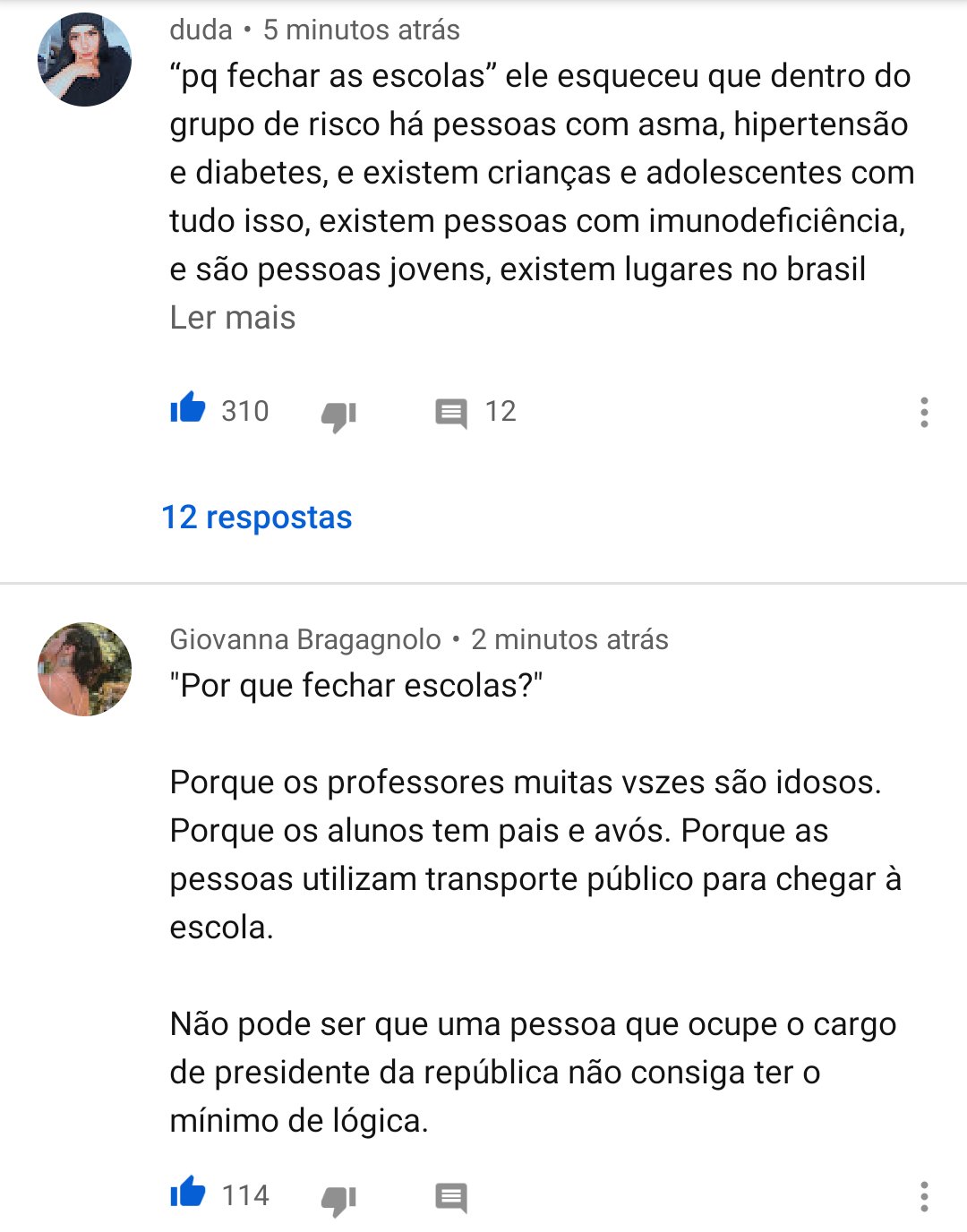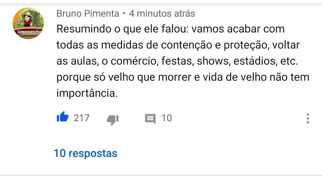 “Por que fechar as escolas?”. Diz o presidente. As crianças podem levar o vírus pra dentro de casa (para o vovô e a vovó) mas ele acha que não.