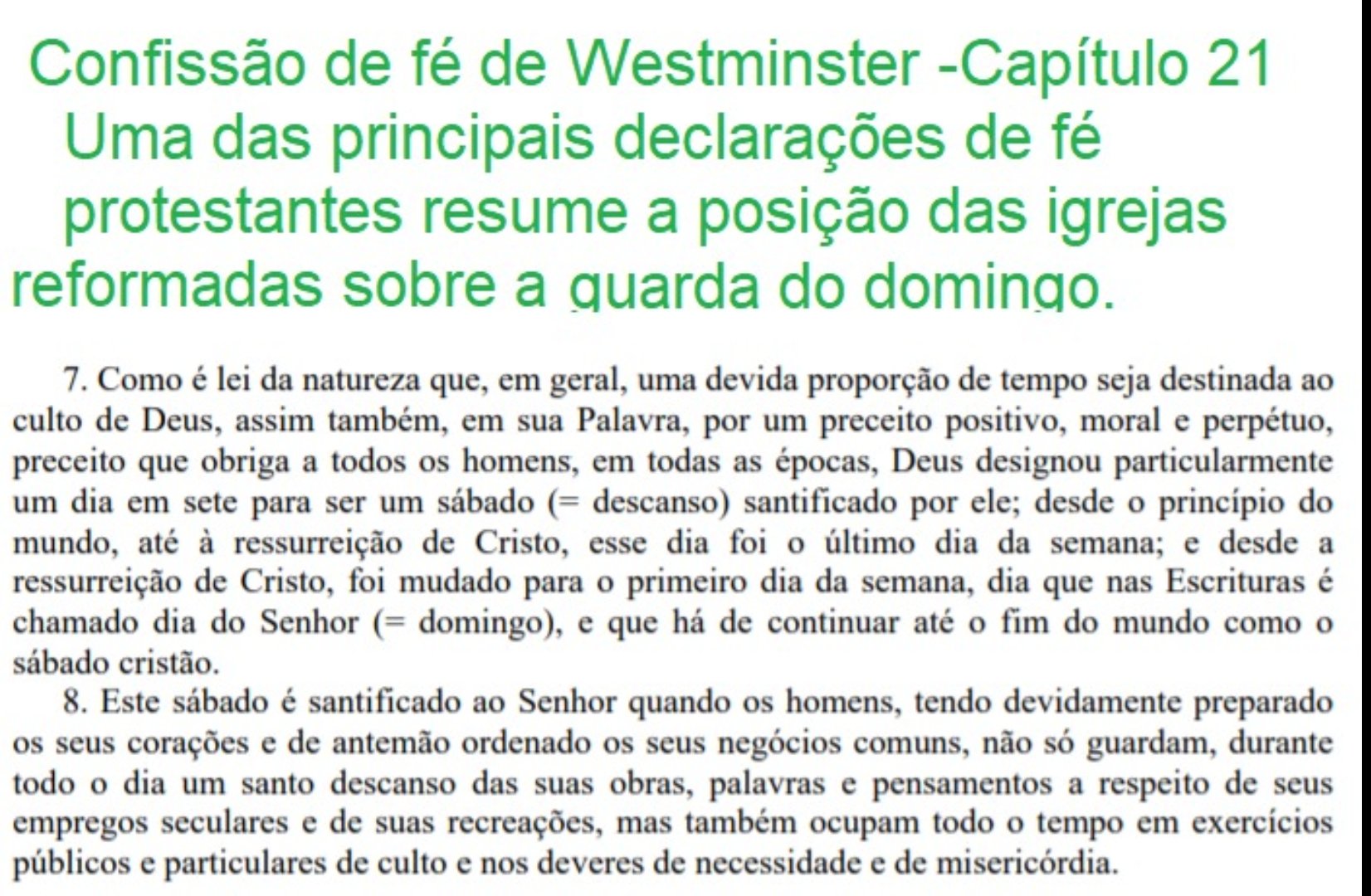 Excelente texto para mostrar para cristãos que afirmam que não existe doutrina para a guarda do domingo (geralmente leigos sem estudo de teologia) que usam expressões como “todo dia é dia do senhor” para desqualificar a guarda do sábado. .