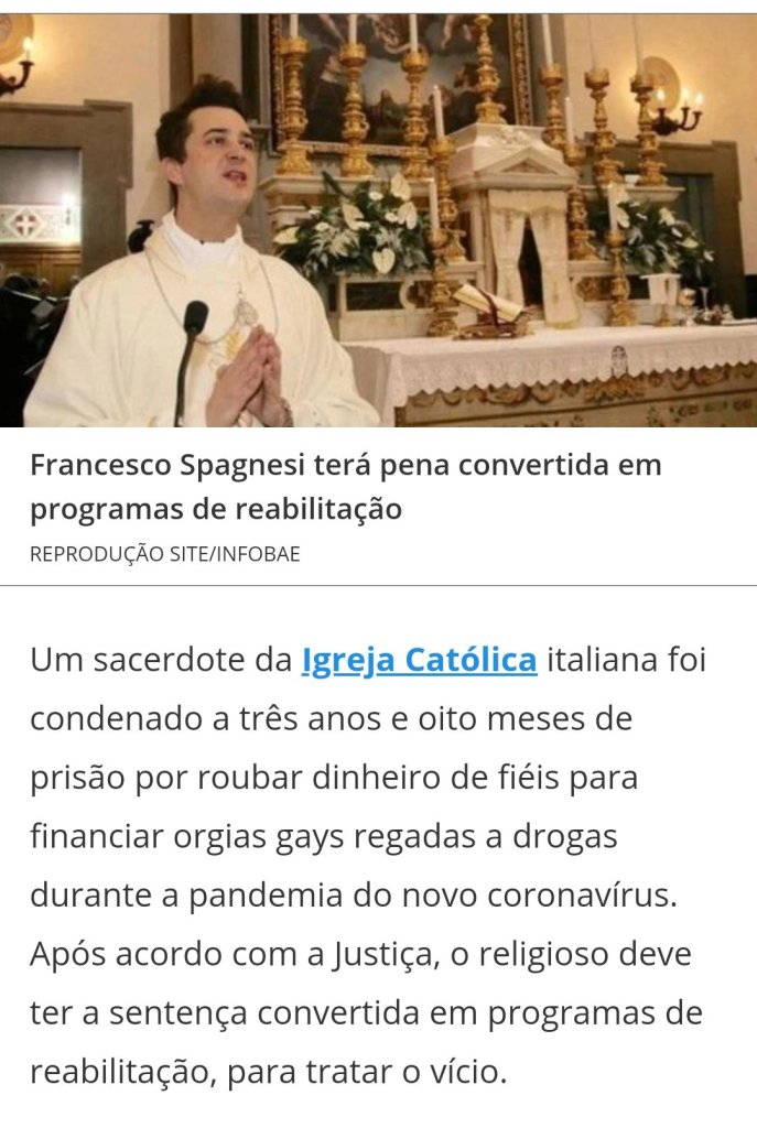 Padre italiano roubou igreja pra financiar orgias e drogas
