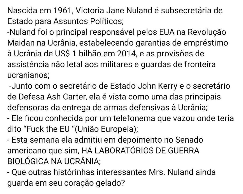 Segunda Besta (EUA) admite que tem laboratório de guerra biológica na Ucrânia