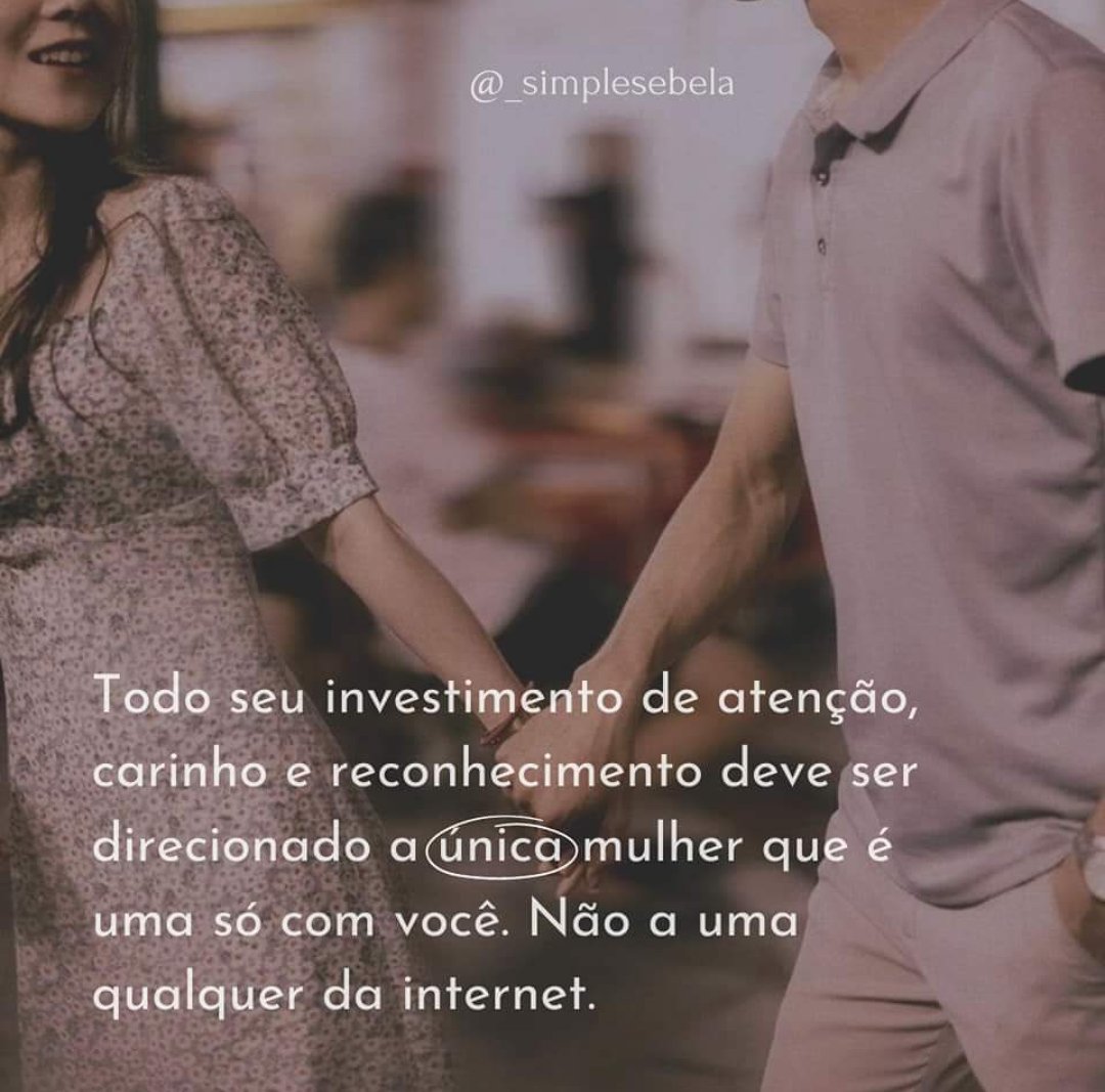 Todo seu investimento de atenção, carinho e reconhecimento deve ser direcionado a única mulher que é uma só com você. Não a uma qualquer da Internet.