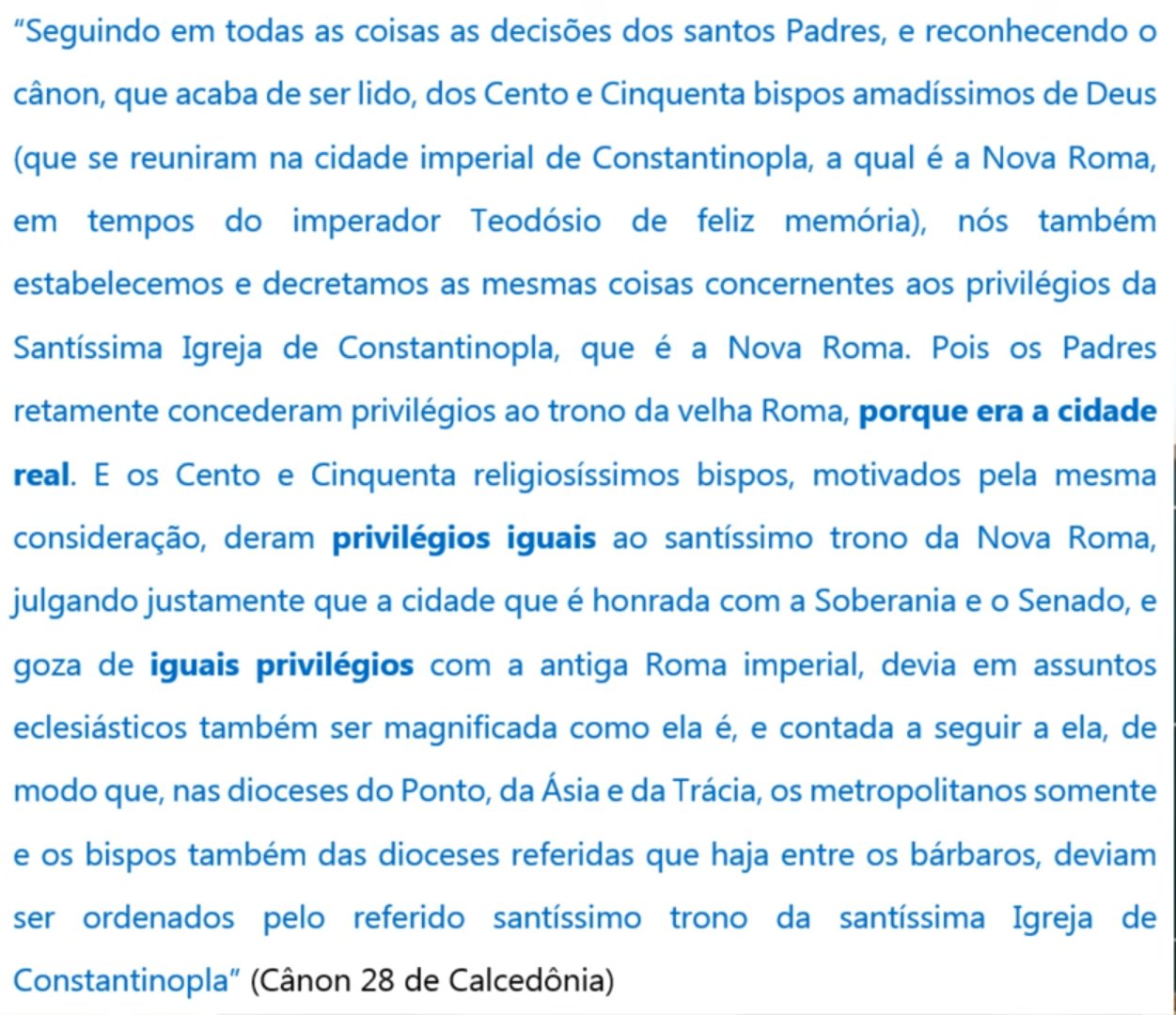 Os Bispos da capital do Império Romano Oriental se declararam em pé de igualdade com Roma ignorando os protestos do Bispo de Roma!! Fonte das imagens no YouTube