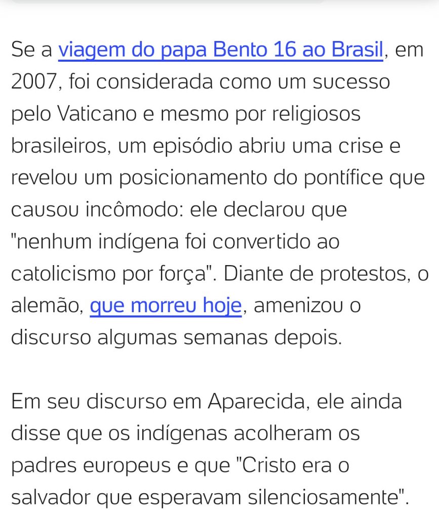 Papa mentiroso: Bento 16 disse que nenhum indígena foi convertido por força