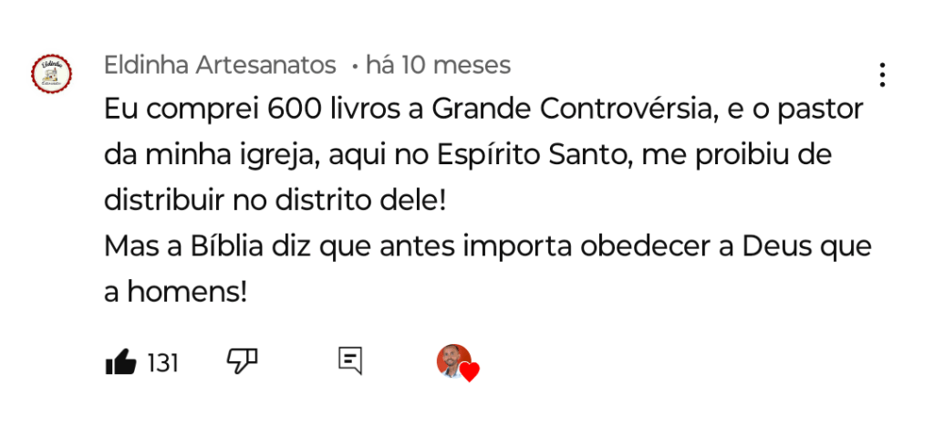 Esse ano a igreja adventista do sétimo dia distribuirá milhões de livros O Grande Conflito. Mas irmãos Adventistas imprimiram já 500 mil livros por conta própria. Só que nomearam como A Grande Controvérsia por questões de direitos autorais. Por qual razão há preconceito na distribuição de forma independente? Se é mais barata a versão completa independente (editora IAGE: 10,90) do que a versão completa oficial (editora CPB: 47,70)?