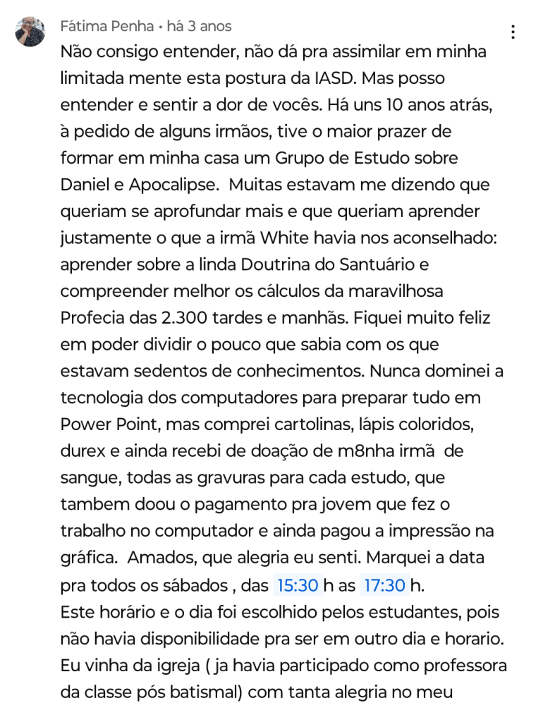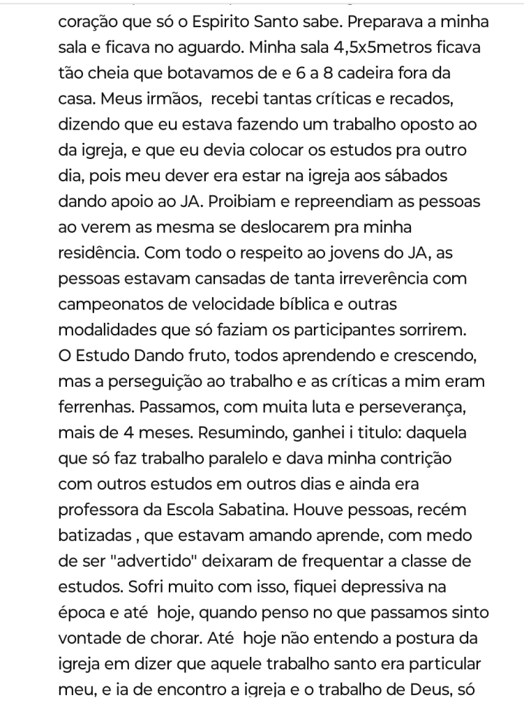 Irmã Adventista criticada por dar estudos bíblicos em casa