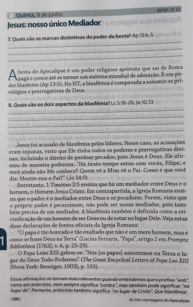 Blasfêmias da besta: Fonte: lição da escola sabatina as 3 mensagens do Apocalipse (abril- junho 2023). Lição do professor.