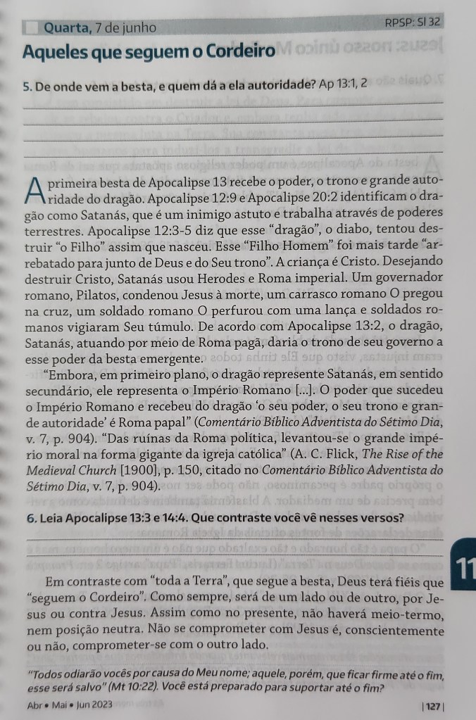 Fonte: lição da escola sabatina as 3 mensagens do Apocalipse (abril- junho 2023). Lição do professor.