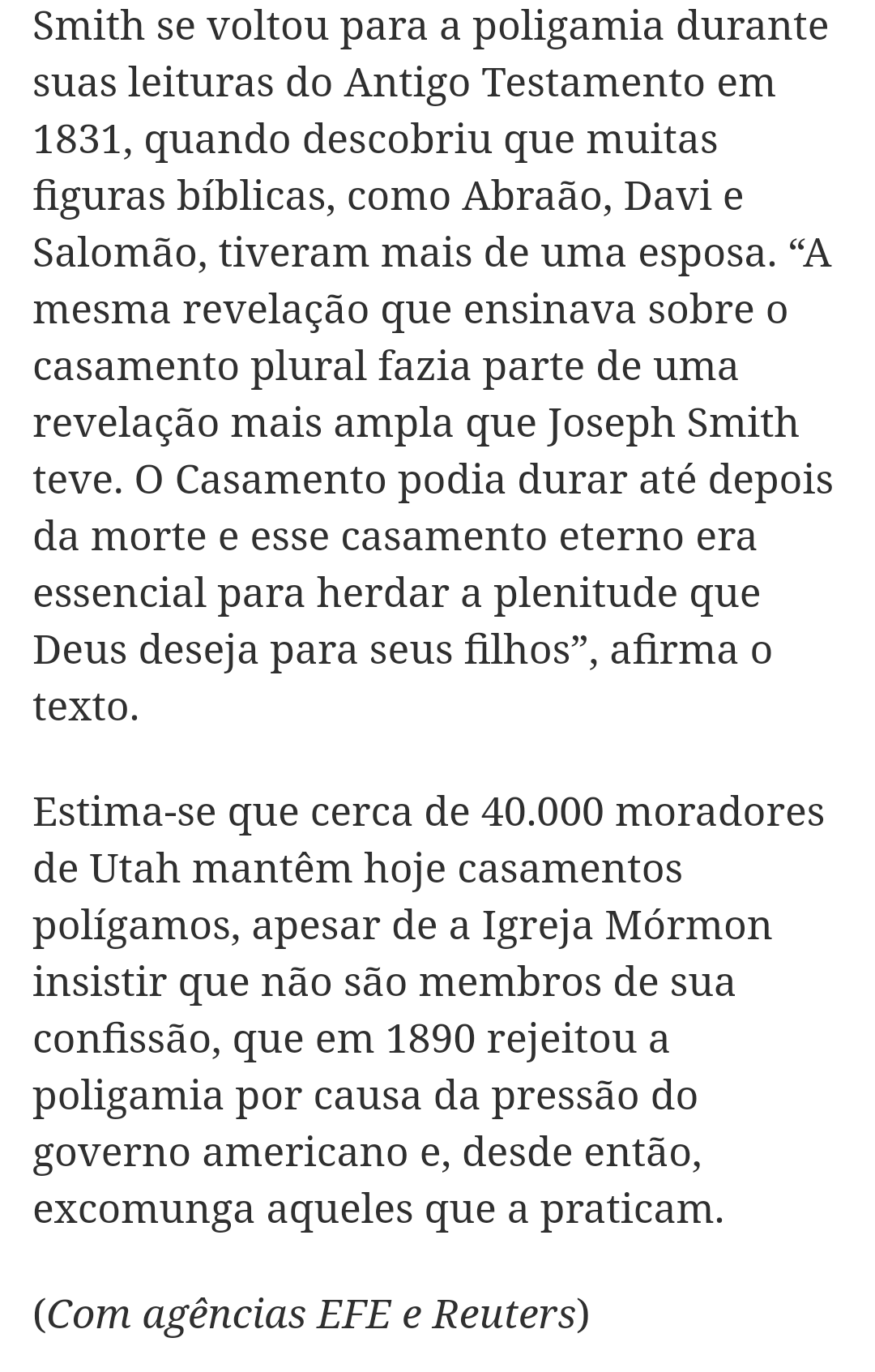 Isso é contra o ensino do Apóstolo Paulo de ter apenas uma esposa. Isso depõe completamente contra Smith.