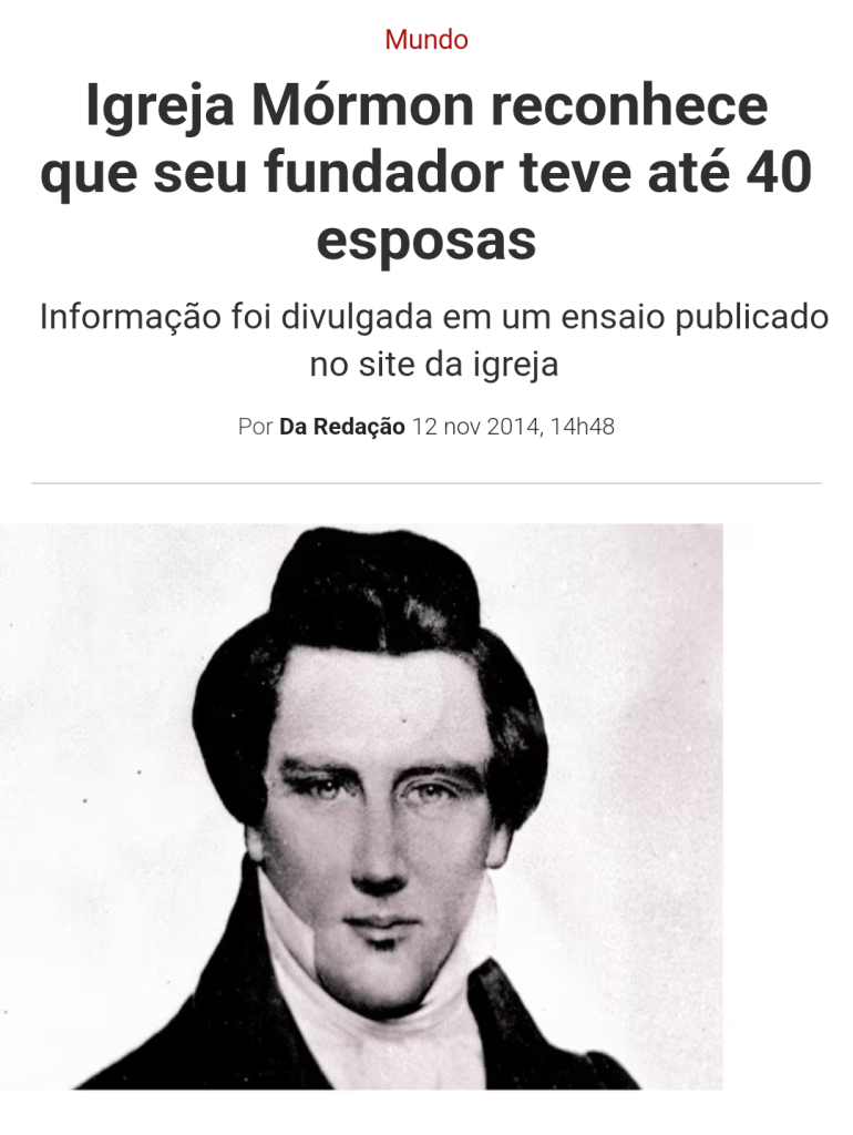 O falso profeta Smith teve até 40 esposas: (contra o ensino do Apóstolo Paulo de ter apenas uma)