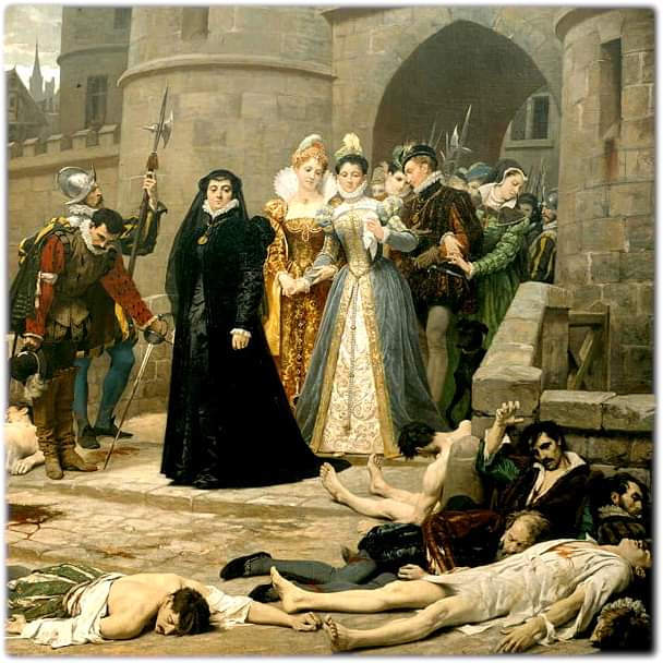 O rei da França, com quem sacerdotes e prelados romanos insistiram, sancionou a hedionda obra. Um sino, badalando à noite dobres fúnebres, foi o sinal para o morticínio. Milhares de protestantes que dormiam tranquilamente em suas casas, confiando na honra empenhada de seu rei, eram arrastados para fora, sem aviso prévio, e assassinados a sangue frio. Durante sete dias perdurou o massacre em Paris, sendo os três primeiros dias com inconcebível fúria. E não se limitou unicamente à cidade, mas, por ordem especial do rei, estendeu-se a todas as províncias e cidades onde se encontravam protestantes.
