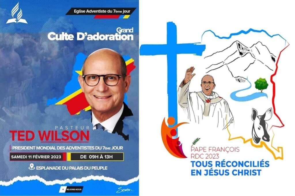O Papa Francisco está em uma “Peregrinação de Paz” para a África. Ele planeja passar três dias na República Democrática do Congo antes de seguir para o Sudão. O presidente adventista do sétimo dia, Ted Wilson, também visitará a República Democrática do Congo por três dias, de 10 a 12 de fevereiro de 2023. Essas duas visitas dos chefes das duas principais religiões do mundo estão tão próximas que apareceram outdoors anunciando suas visitas, mesmo lado a lado, por toda Kinshasa, a capital.