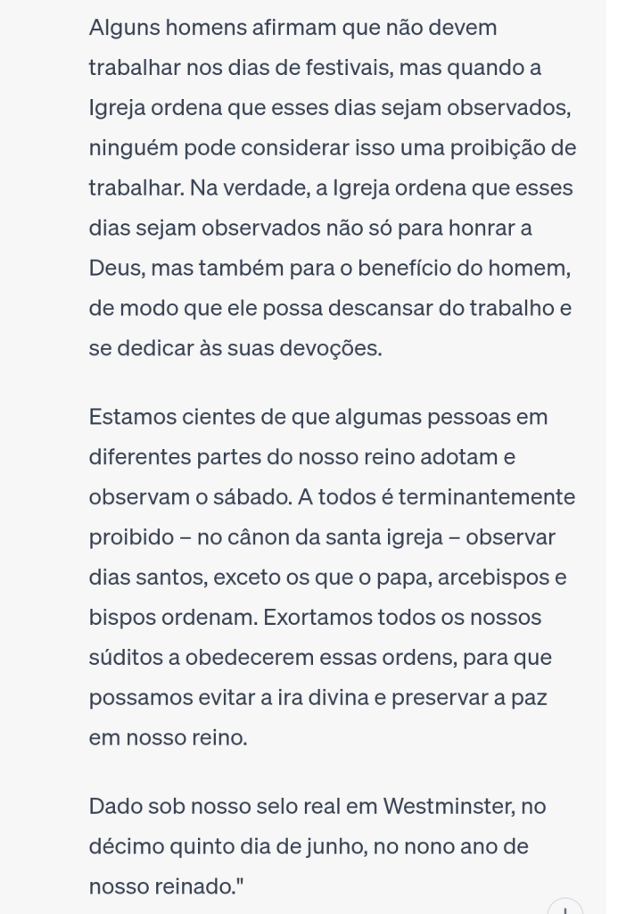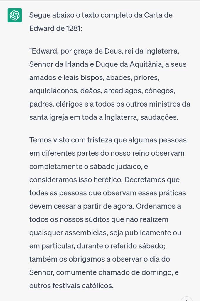 Carta do Rei Edward de 1281 reconhece guardadores do sábado