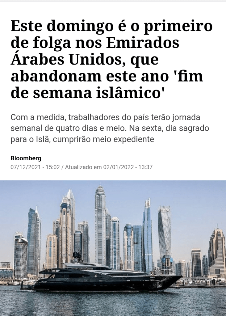 No final de 2021 os Emirados Árabes Unidos estabeleceram oficialmente o domingo como dia de descanso. O motivo é óbvio: é necessário seguir os horários e dias de funcionamento do comércio Mundial. Para quem não é fiel o dinheiro importa mais do que Deus. Mas não queremos entrar nessa questão. O que queremos dizer é que Ellen White acertou mais uma vez e os evangélicos continuam usando argumentos fajutos para não reconhecer a validade de um dos dez mandamentos.