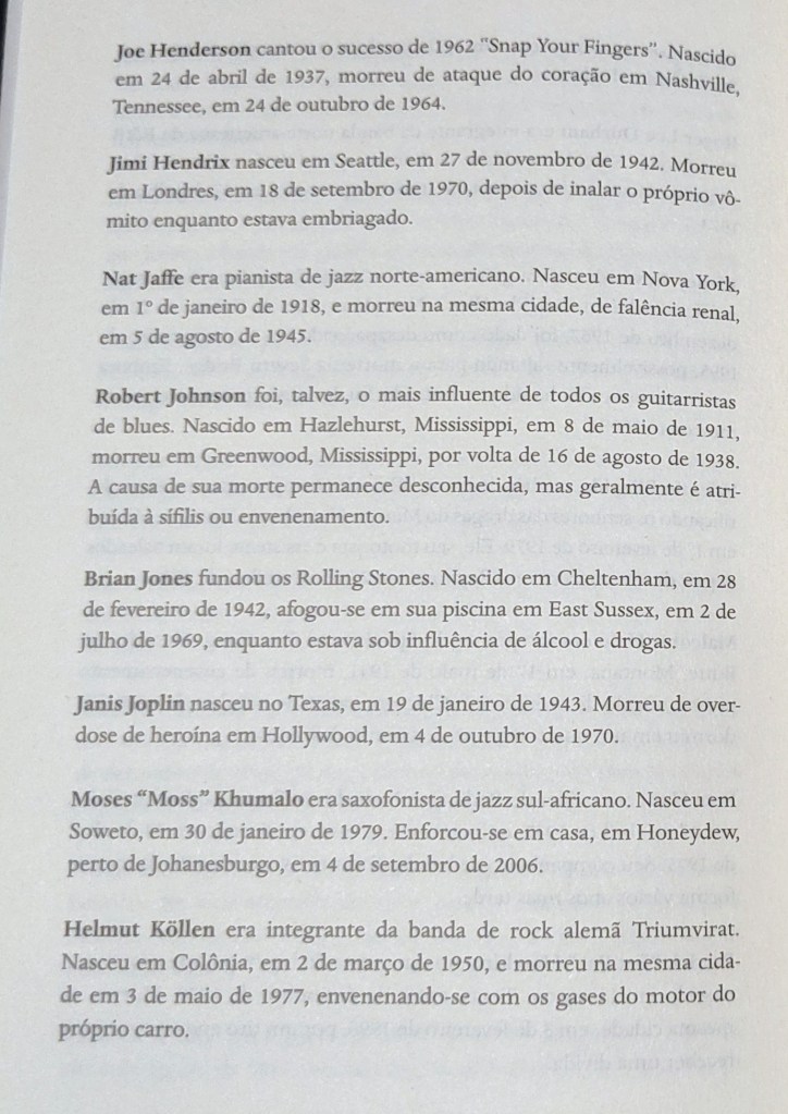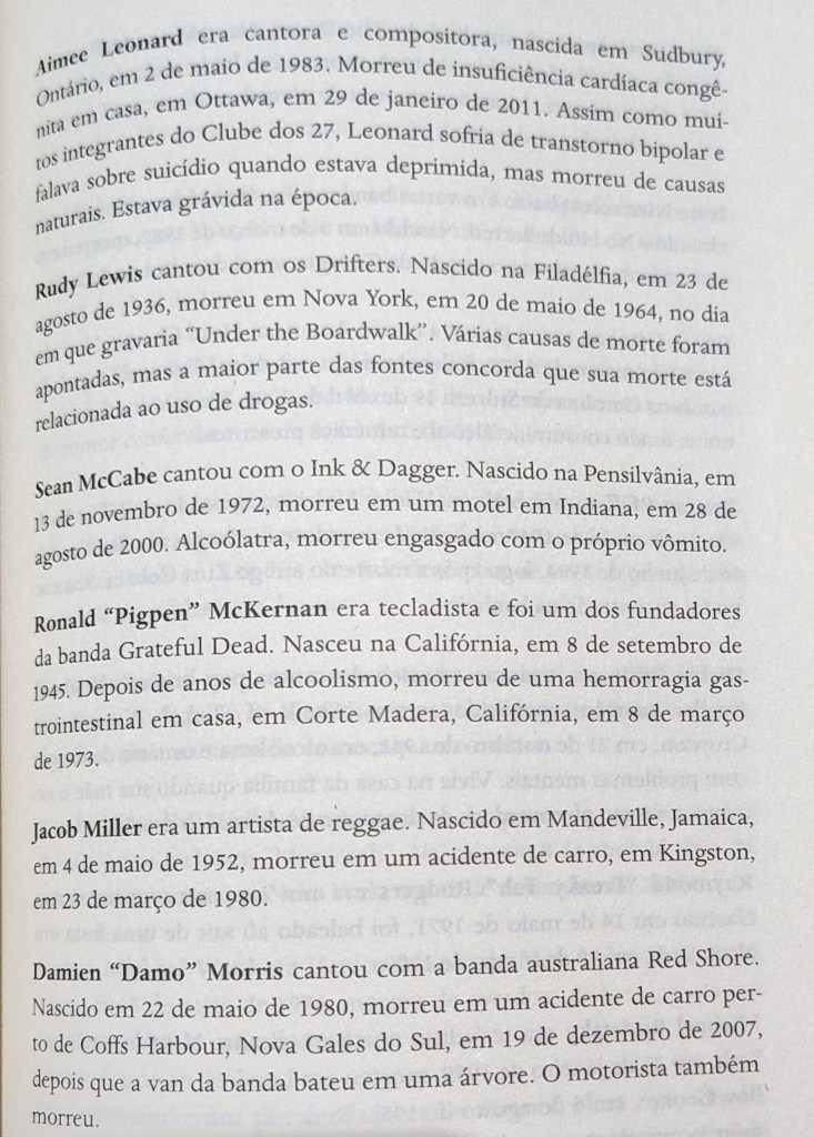 Fonte: Amy e o Clube dos 27. HOWARD SOUNES. Veja também: a maldição dos cantores sertanejos. Morreram no auge do sucesso.